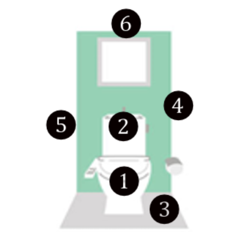 | ①便器・便座 尿石・水垢除去・本体拭き上げ |